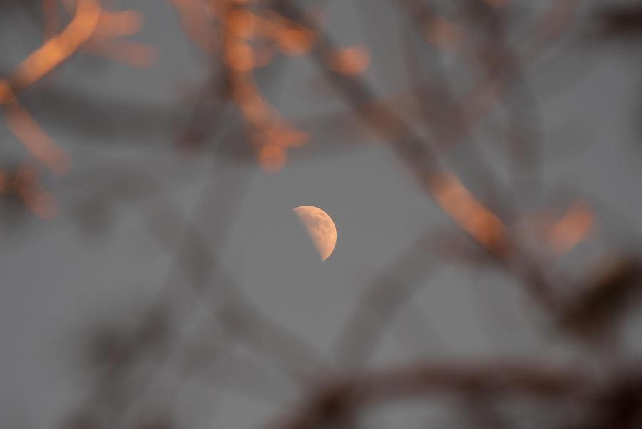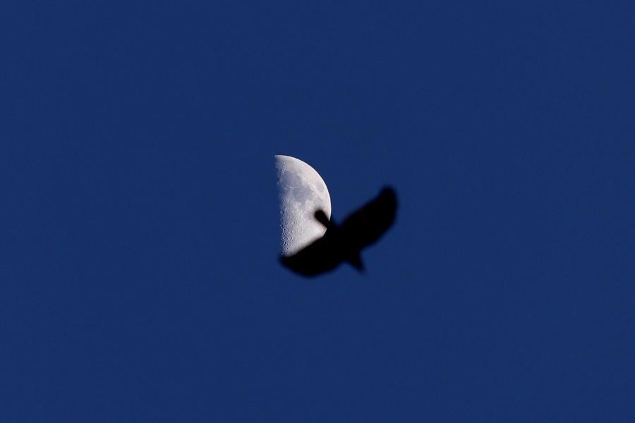 This photo taken on Feb. 24, 2026 shows the moon over Yimei District of Yichun, northeast China's Heilongjiang Province. (Photo by Li Jiaxing/Xinhua)