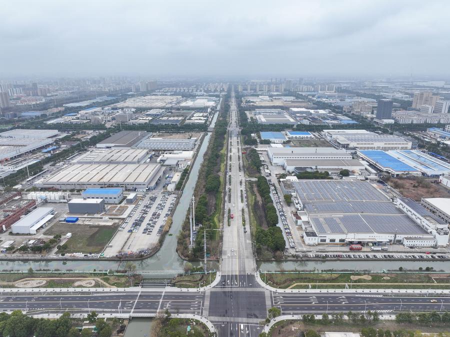 An aerial drone photo taken on Feb. 25, 2026 shows a view of the German enterprise cluster area in Taicang, east China's Jiangsu Province. (Xinhua/Ji Chunpeng)
