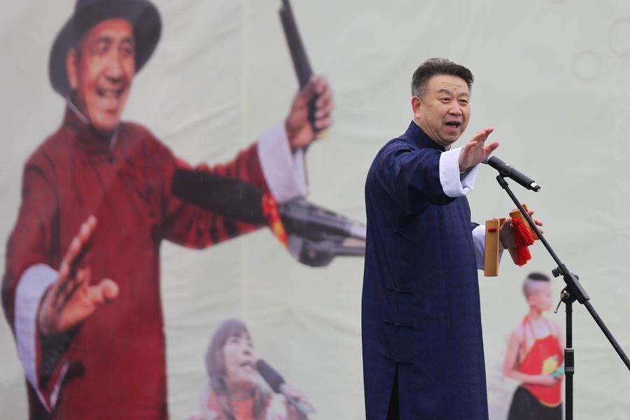 A folk artist performs during the Majie Quyi Fair at Majie Village of Baofeng County, central China's Henan Province, March 1, 2026. (Photo by He Wuchang/Xinhua)