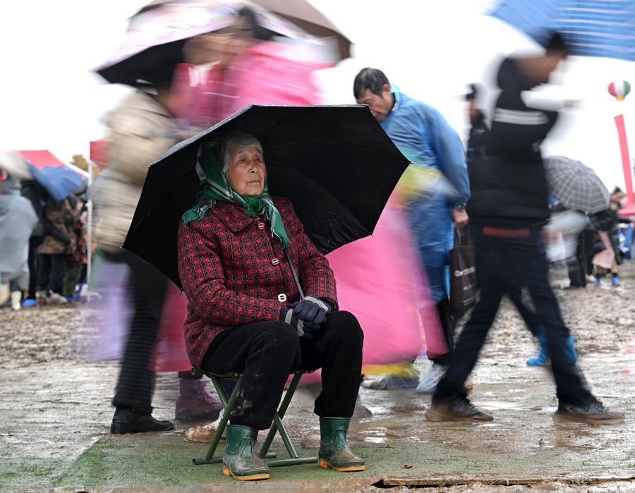 An elderly woman attends the Majie Quyi Fair at Majie Village of Baofeng County, central China's Henan Province, March 1, 2026. (Xinhua/Li Jianan)