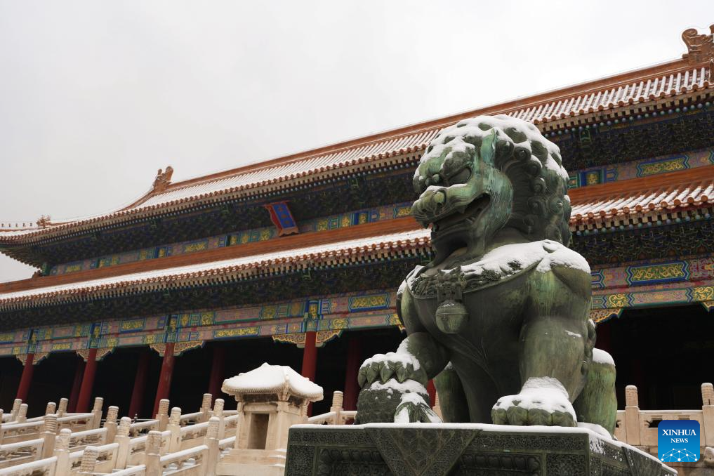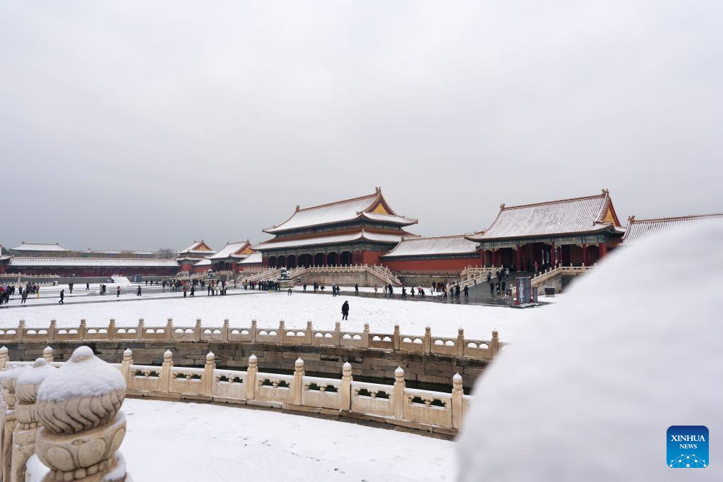 This photo taken on March 5, 2026 shows a view of the Palace Museum after a snowfall in Beijing, capital of China. Beijing has witnessed a spring snowfall from Wednesday to Thursday. (Xinhua/Xie Han)