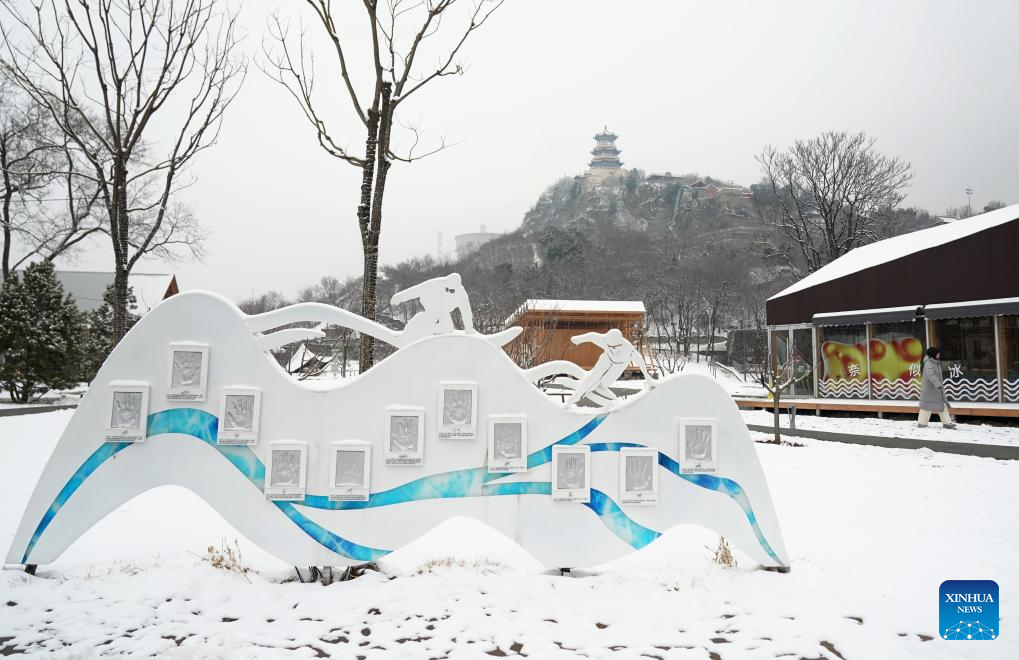 Tourists visit the Shougang Park after a snowfall in Beijing, capital of China, March 5, 2026. Beijing has witnessed a spring snowfall from Wednesday to Thursday. (Xinhua/Zhang Chenlin)