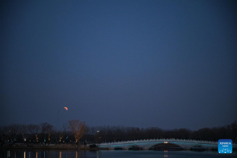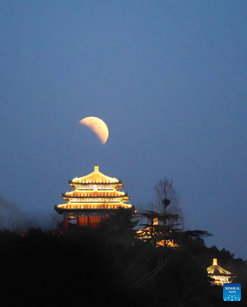 The moon is seen during a total lunar eclipse over Beihai Park in Beijing, capital of China, March 3, 2026. Tuesday marked the Lantern Festival, which falls on the 15th day of the first month of the Chinese lunar calendar. This year's festival coincided with a total lunar eclipse. (Xinhua/Xie Han)