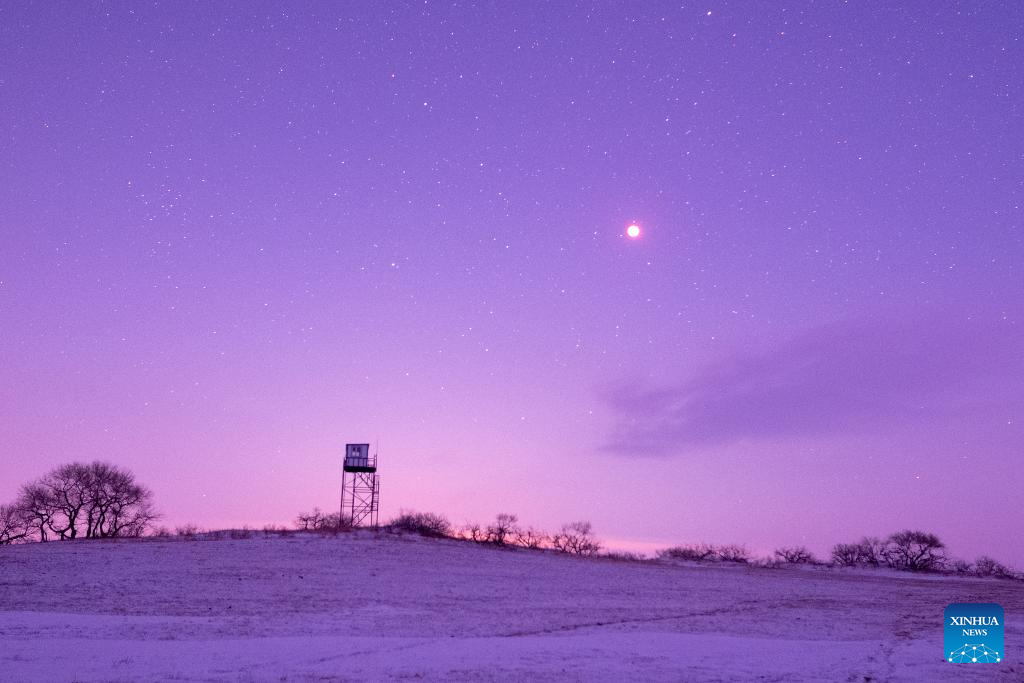 The moon is seen during a total lunar eclipse over Tongjiang City, northeast China's Heilongjiang Province, March 3, 2026. Tuesday marked the Lantern Festival, which falls on the 15th day of the first month of the Chinese lunar calendar. This year's festival coincided with a total lunar eclipse. (Photo by Liu Wanping/Xinhua)