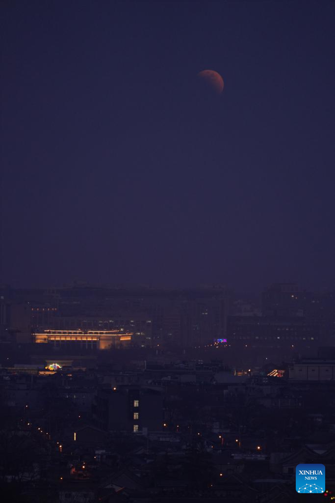 The moon is seen during a total lunar eclipse over Beijing, capital of China, March 3, 2026. Tuesday marked the Lantern Festival, which falls on the 15th day of the first month of the Chinese lunar calendar. This year's festival coincided with a total lunar eclipse. (Xinhua/Sun Ruibo)