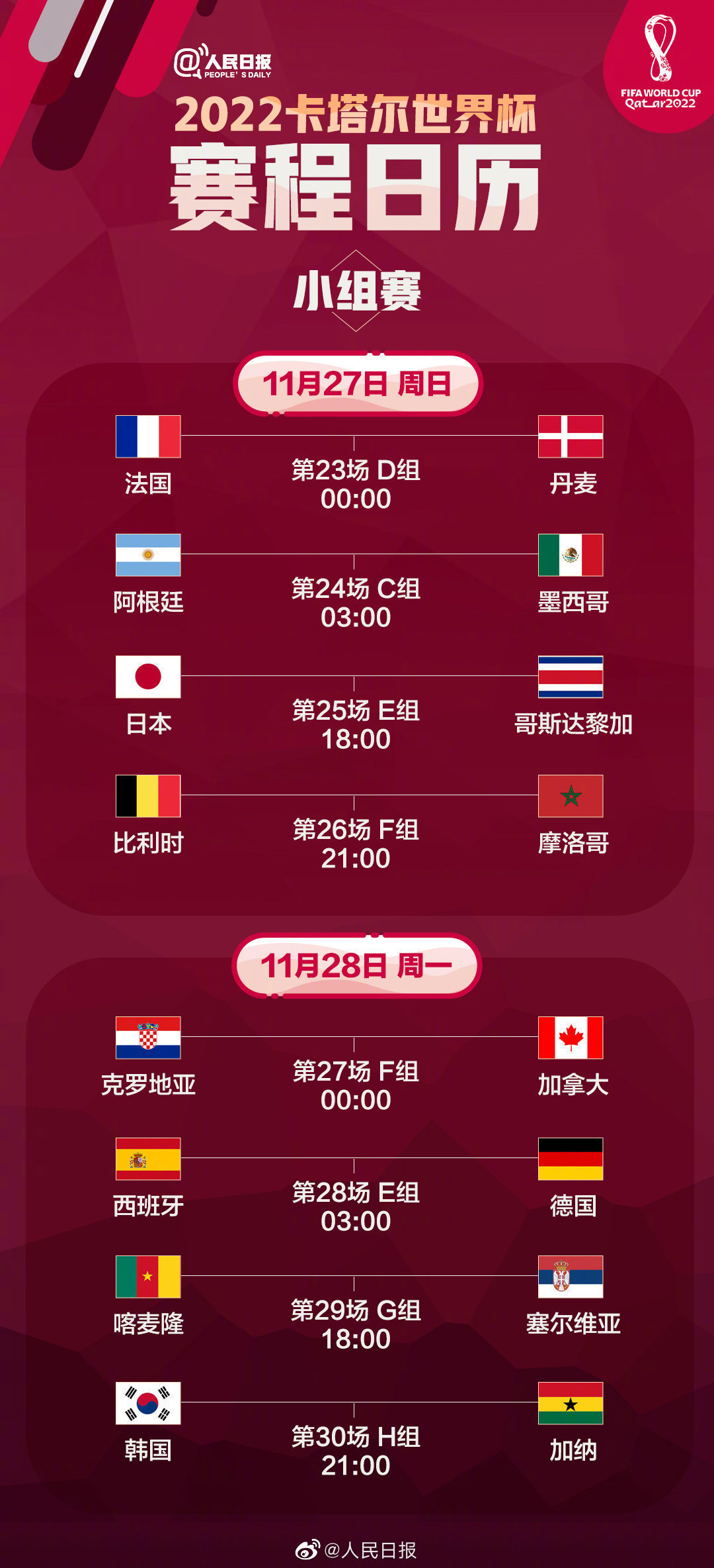 收藏!送你一份卡塔尔世界杯赛程日历