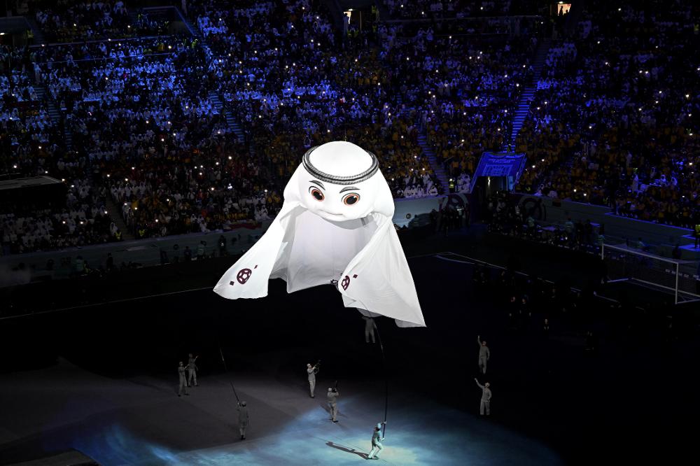 11月20日,卡塔尔世界杯吉祥物出现在开幕式上。新华社图