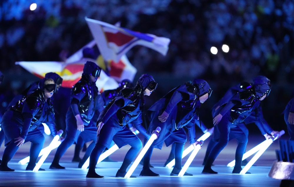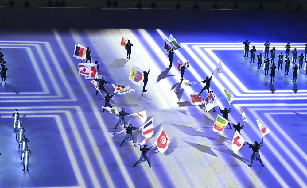 11月20日,演员在开幕式上表演。当日,2022年卡塔尔世界杯开幕式在海湾球场举行。新华社图