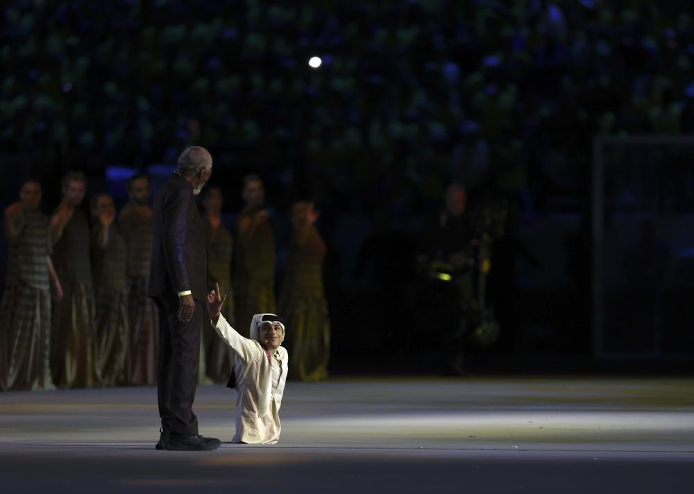 北京时间11月20日晚,2022年卡塔尔世界杯开幕式在海湾球场举行,摩根·弗里曼现场表演。