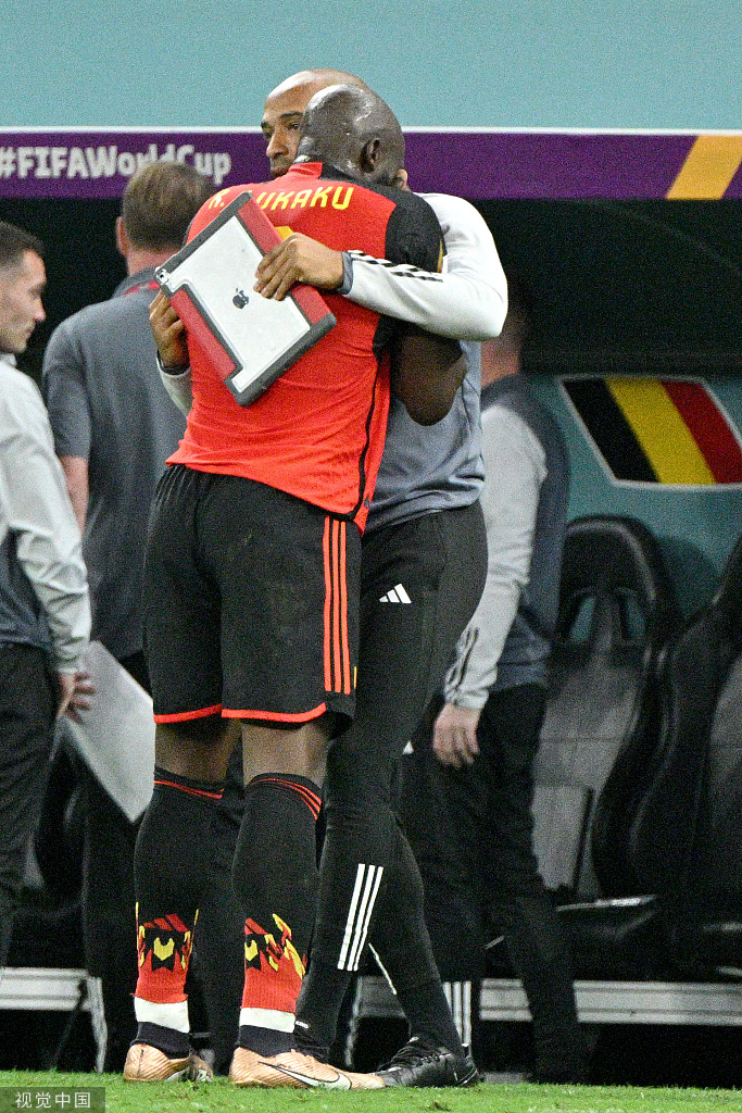 赛后不出意料,卢卡库也成为了球迷“群嘲”的对象,而他自己也懊恼不已——下场之时,愤怒的他一拳打爆了替补席的挡板,随后扑在了比利时队助教亨利的肩头痛哭流涕。