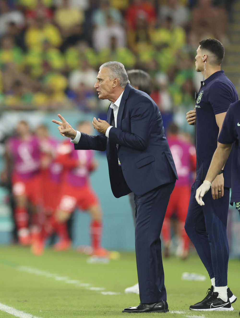 11月28日,巴西队主教练蒂特(左)在比赛场边指挥。新华社记者李明摄
