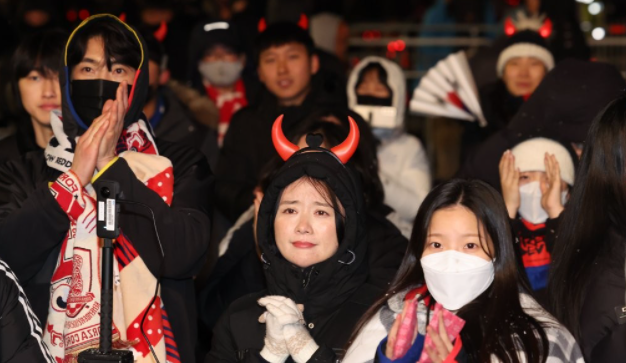 【环球网报道】北京时间6日凌晨,2022年卡塔尔世界杯16强赛韩国队1:4败于巴西队。据韩联社6日报道,这场比赛当天,首尔市凌晨气温降至零下3度加上下雪,但仍有3.3万多名韩国球迷风雪无阻聚集在光化门广场,为韩国队助威。对于比赛结果,韩联社称,韩国队虽败犹荣。此外,本场比赛赛后,韩国队主帅保罗·本托宣布决定不再续约。