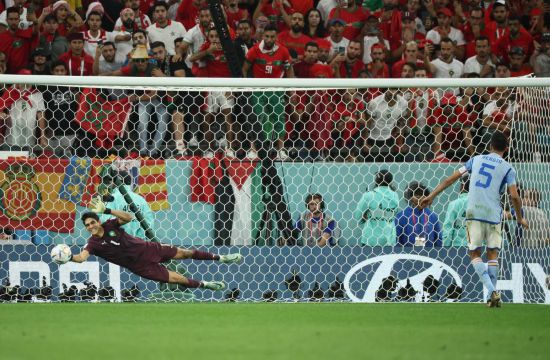 摩洛哥队门将布努在点球大战中先后扑出了西班牙队索莱尔和布斯克茨的点球,是摩洛哥队进入八强最大的功臣。