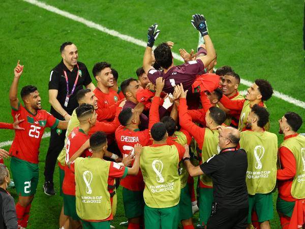这对摩洛哥队是最有利的,只要认真防守住对方每一个进攻点,保住平局不成问题。果然,他们顶住了西班牙队的大举进攻,成功地将比赛拖进了点球大战。接着,摩洛哥队的门将布努开始发威,零封了西班牙队前三名主罚球员的射门,最终摩洛哥队历史性地闯进世界杯八强。