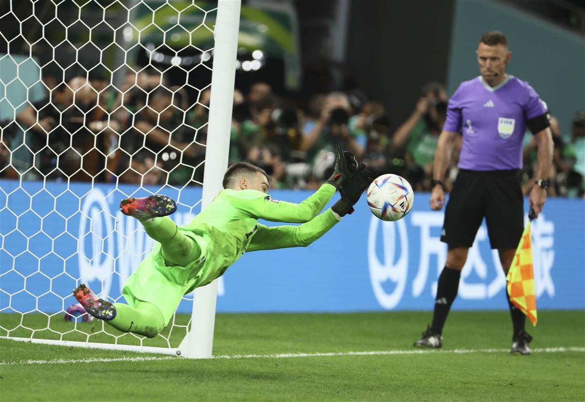 在这场大爆冷门的比赛中,克罗地亚队的门将利瓦科维奇获评全场最佳。这名年仅27岁的门将在本场比赛中表现神勇,数据显示,他在比赛中触球51次,完成扑救11次,创下本届世界杯门将的单场扑救次数纪录。而在本场的点球大战中,利瓦科维奇还扑出了一个点球,至此他在本届世界杯上已经扑出4个点球,为世界杯史上最多。