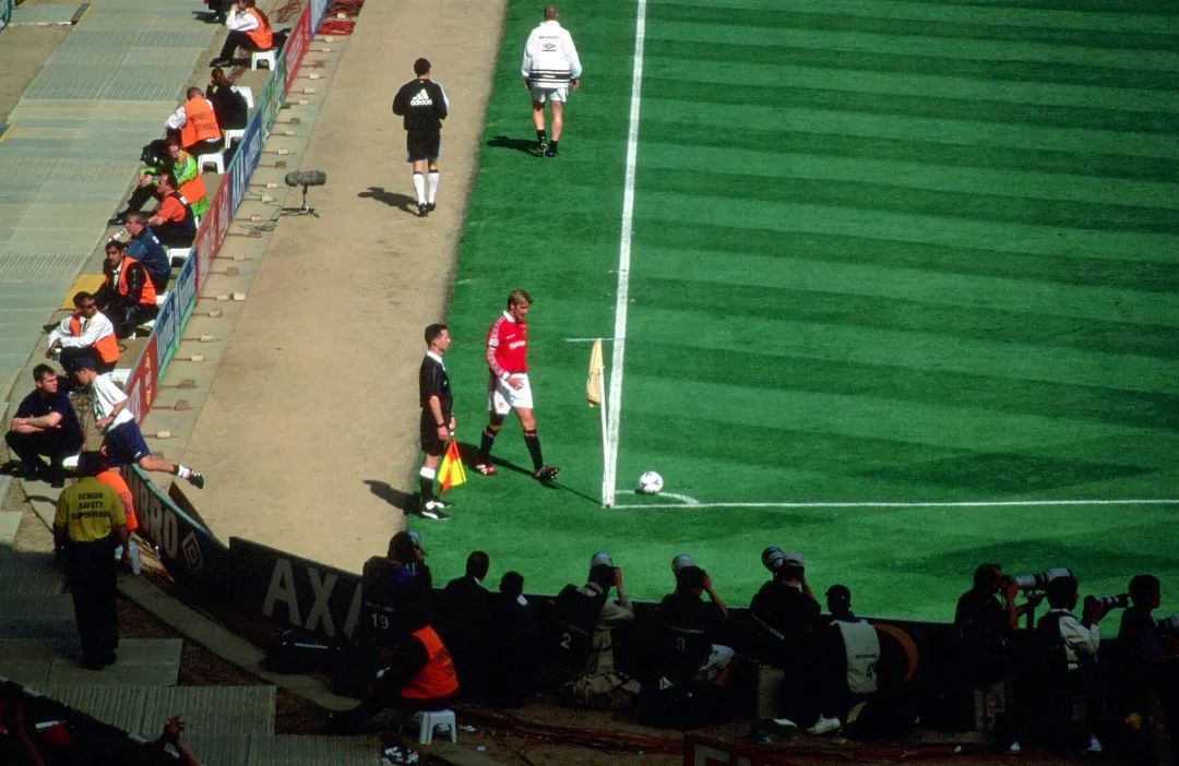 1999年5月22日,英超联赛,曼联对阵纽卡斯尔,贝克汉姆主罚角球。图/MichaelCairns/Wiki