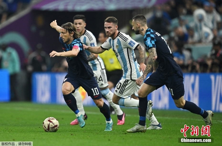 对阵阿根廷的半决赛上半场第27分钟,莫德里奇在前场主罚任意球。皮球射出后被阿根廷队破坏,“潘帕斯雄鹰”迅速展开反击。镜头一转,莫德里奇却已经回防至本方禁区破坏了对手传球。
