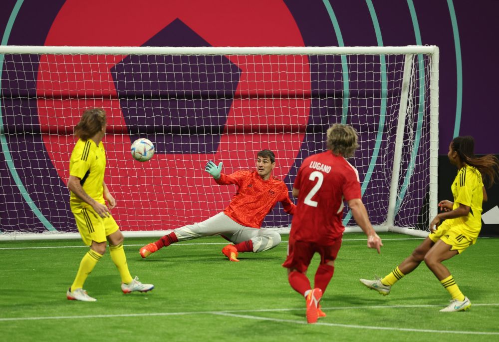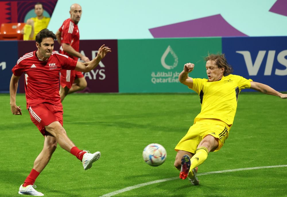 趁着世界杯休赛日的当口,由近百名球员组成的8支队伍,正在这里参加第一届国际足联传奇杯足球赛。一群来自不同地区、性别、年龄段,有故事、有球技的著名球星难得地相聚在了多哈。在这群人当中,有依然玉树临风的卡卡、身材矫健的西多夫,也有身材出现变化的维埃里、特雷泽盖、斯内德……