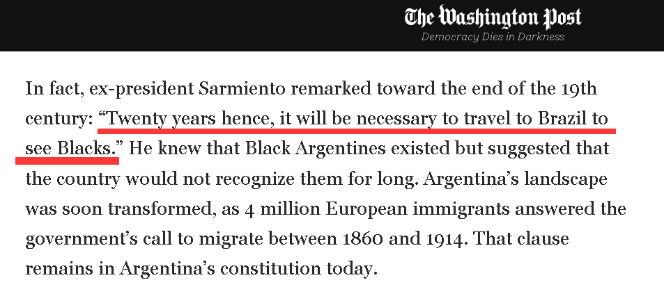 其次,爱德华兹在文章的最后,也批评了一下阿根廷国内仍有一些人想让阿根廷被视为“白人”国家、不想承认该国黑人历史的现象。这又给了美国右翼媒体在阿根廷人那边拱火的口实。
