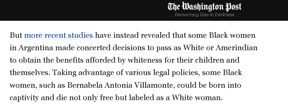 而阿根廷当时的黑人——就像爱德华兹前面所说——为了获得这种政策的红利,便纷纷选择要么与白人结合,然后也把自己登记为白人,要么将自己的种族更改为了其他“不那么黑”的非白人种族,比如肤色深一些的西班牙裔或者美洲印第安人,或是被称作“morocho”的棕黑肤色人种。