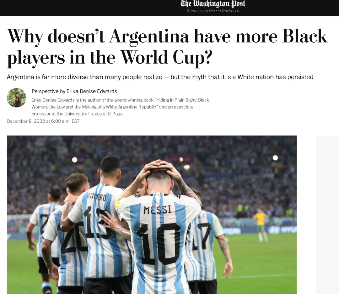 所以,在面对西方人如今提出的“为啥阿根廷队没有黑人球员”的问题,一直在研究相关话题的爱德华兹,便决定在《华盛顿邮报》上撰文一篇,从历史的角度来尝试回答这一问题。