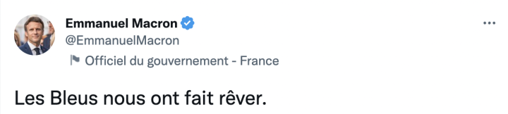 法国总理博尔内也在社交媒体上表示:“谢谢你们,蓝衣军团!我们与你们一同颤抖,直到最后一刻。感谢你们带来的世界杯旅程,感谢你们让我们有梦想,感谢你们奉献了这场无与伦比的比赛。”