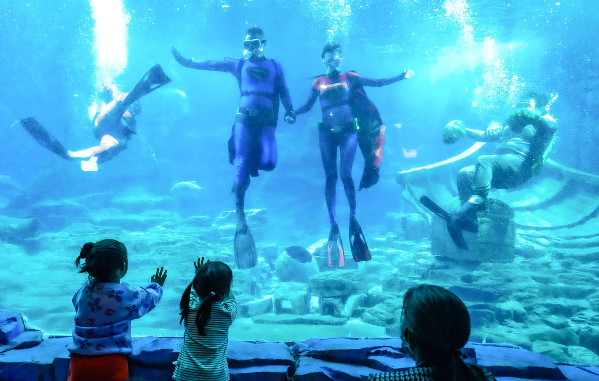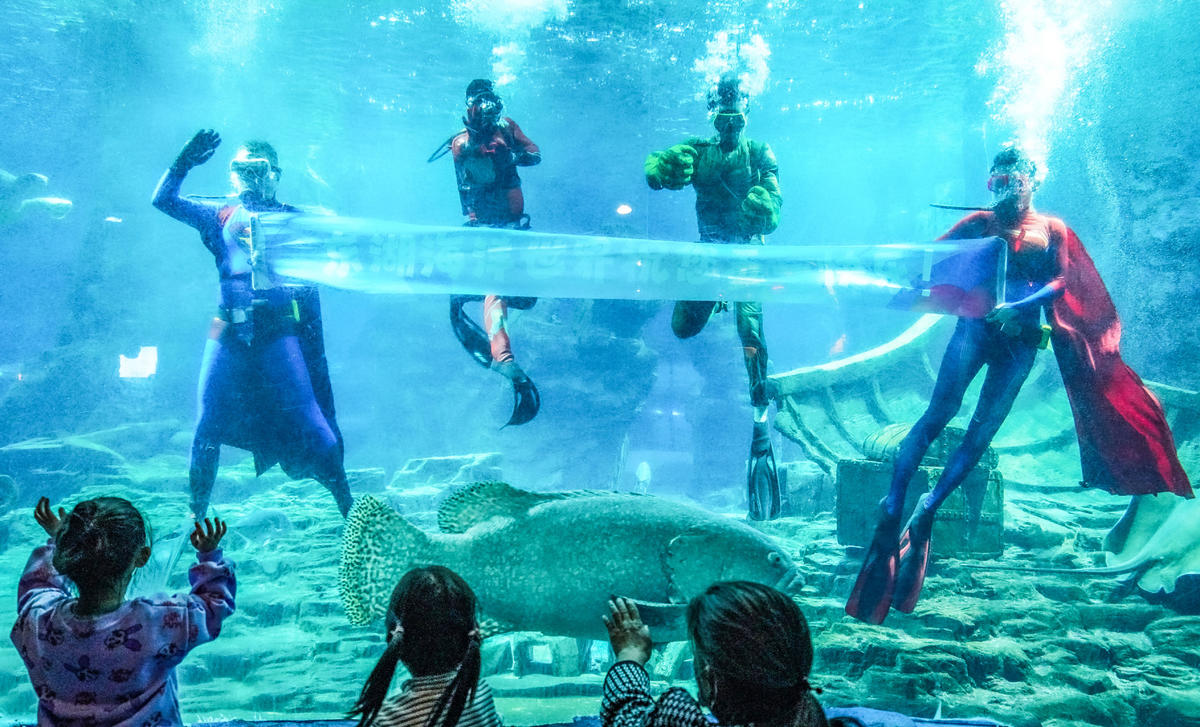 五一期间,东湖海洋世界海盗船剧场限时上演“超级英雄海洋秀”,4名潜水员解锁节日新皮肤,超人、钢铁侠、绿巨人等超级英雄空降海底,与海洋动物水下共舞!东湖飞鸟世界的超新星“水獭”也练就了新绝活,游客朋友们可以在飞鸟剧场观赏到水獭的逗趣行为展示,也借此呼吁大家爱护动物。