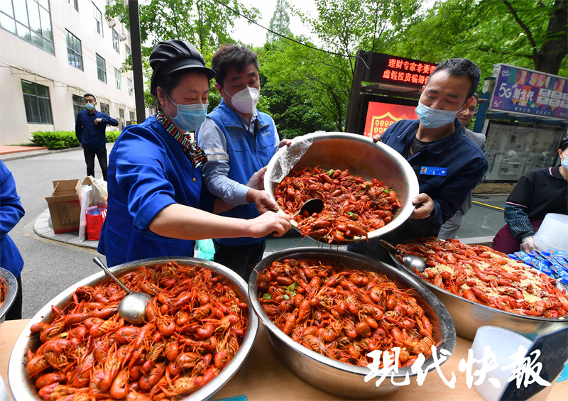航空学院研一学生甘亮也购买了十三香口味的龙虾,带回去与同门一起分享。“一年一度的龙虾节到了,在学校吃比较实惠,氛围也比较好。”