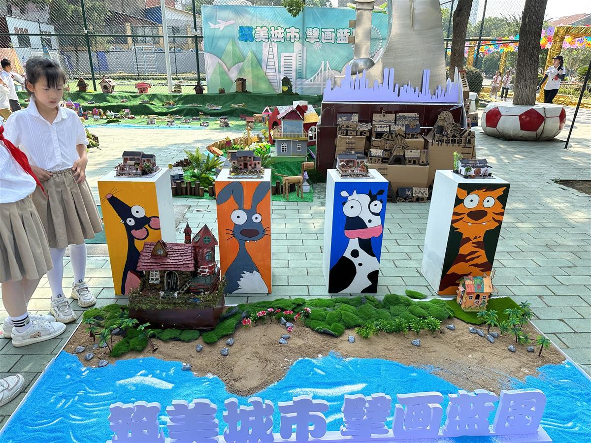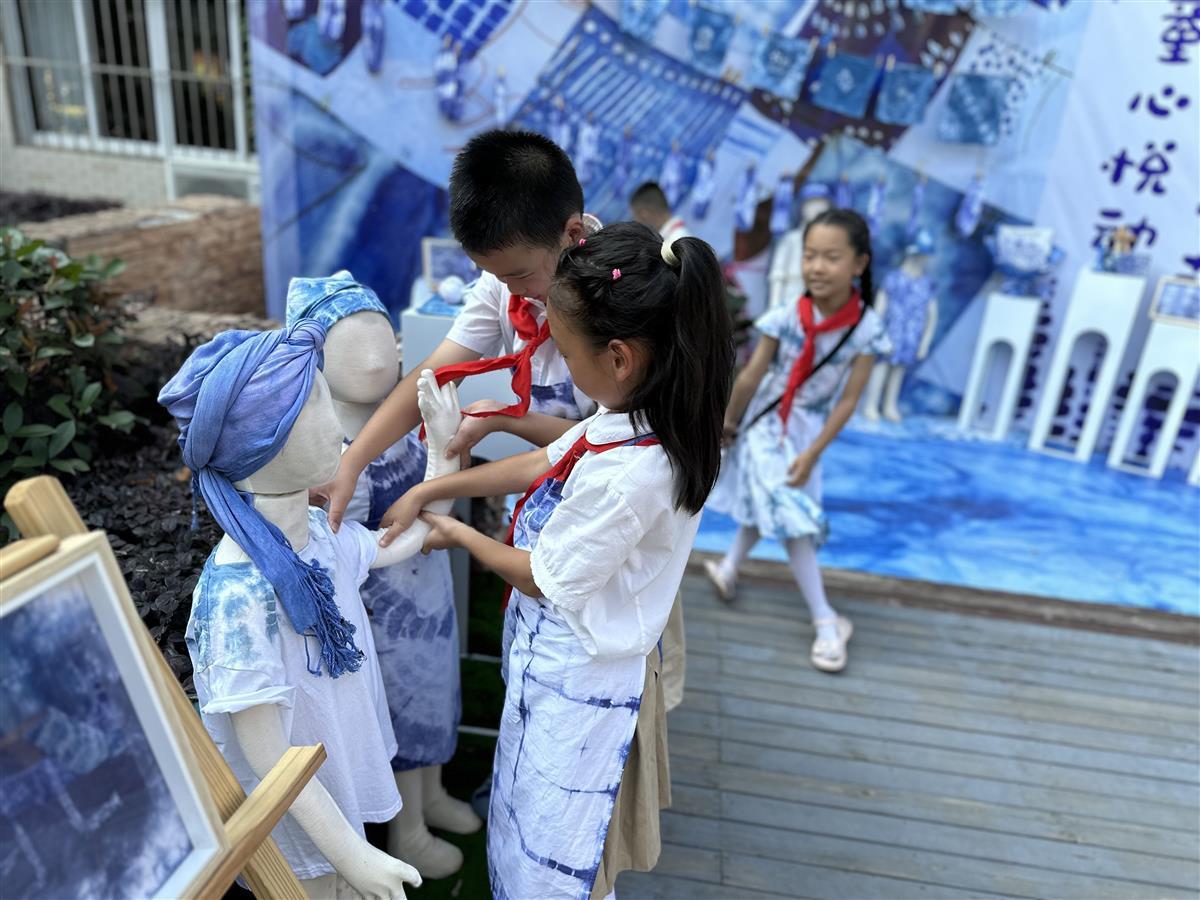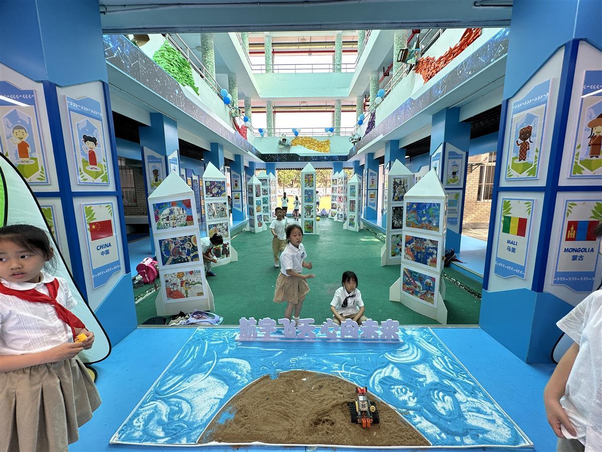 该校相关负责人介绍,学校将静态的场景和动态的体验相结合,学生们可以根据自己的兴趣,自主选择体验区。还有不少课程体验,融合了科学和美术的特色。“空模课程里,学生体验模拟飞行,探索纸飞机的设计。建模课程体验区里摆放了学生自主设计的手工作品,《大国重器》这一作品就展示中国海军逐渐发展壮大的历程。扎染课程发挥了学生的想象力和动手能力。食育作品展,展示了劳动教育和美育的成果。”