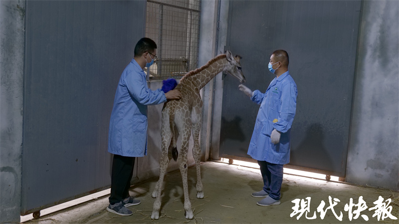 “其实,我们就相当于它的‘全职奶爸’。”闻亮说,自己基本没有照顾过自家的孩子,但自从小长颈鹿出生他就一步都没有离开过,“我们人工喂过老虎、棕熊的幼崽,但还从来没有人工喂过长颈鹿,压力还是蛮大的。”