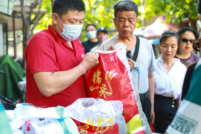 排队买粽子的队伍中有上了年纪的大伯大妈,也有20多岁的年轻人。一箩筐粽子卖完了,田吉刚又跑到他的面包车后备厢,拿了另外一麻袋粽子倒了进来:“这一包是蜜枣的。”话音刚落,后面排队的顾客又凑了上来。