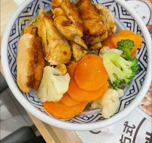一碗照烧鸡排饭端上来,晶莹剔透的秘制酱汁包裹着金灿灿的炸鸡排铺满一层,旁边撒了些洋葱丝。吃到这样的炸鸡排幸福感简直要爆棚!肉质弹牙,外酥里嫩,鲜嫩多汁这些词此时都不足以形容。