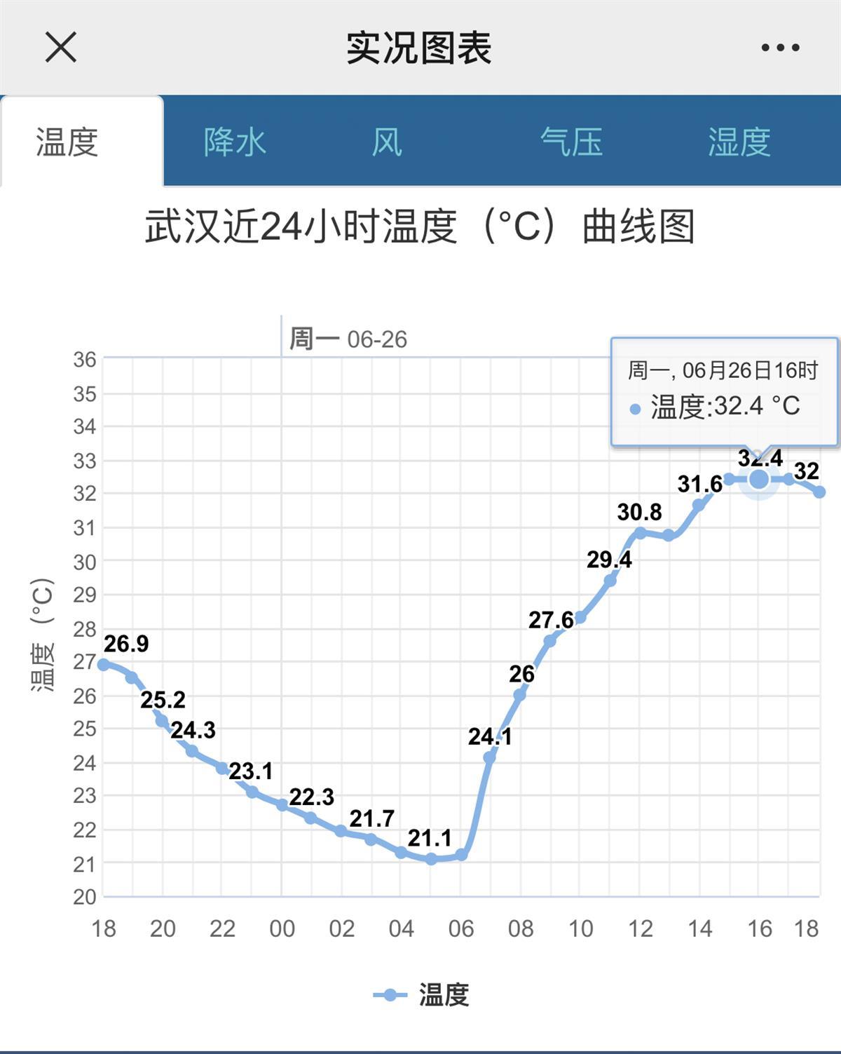 武汉26日32.4℃