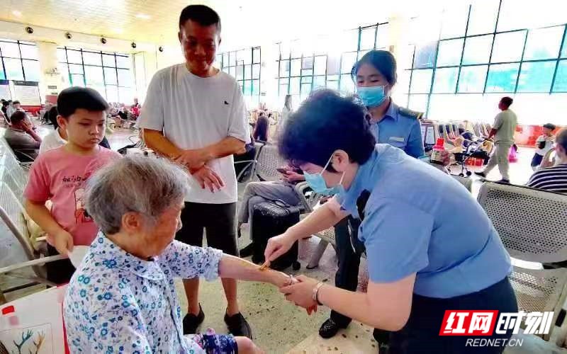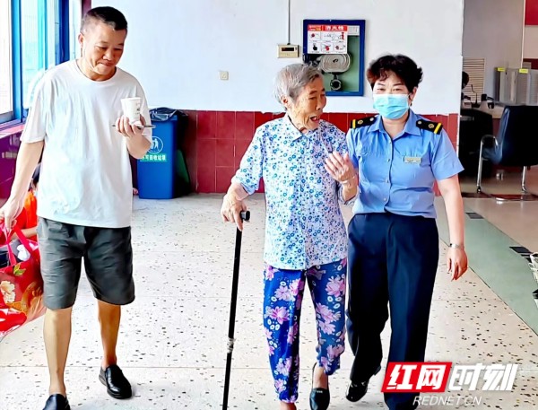 经询问得知,老人名叫杨实娥,今年89岁,跟随儿子一家乘坐当日7279次列车返回新化老家,在乘坐电梯时不小心摔倒,幸亏受到车站工作人员的帮助,身体并无大碍。