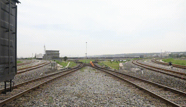“滑梯”尾部连接着不同的调车线,道岔会按照调度指挥快速转换,让车厢“滑”入指定轨道。