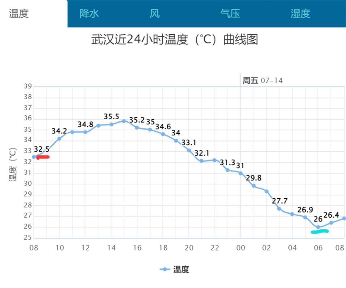 高温还没创纪录,低温率先钻出来破纪录:武汉昨日(13日)低温达31.8℃,打破武汉7月最低气温的最高纪录。