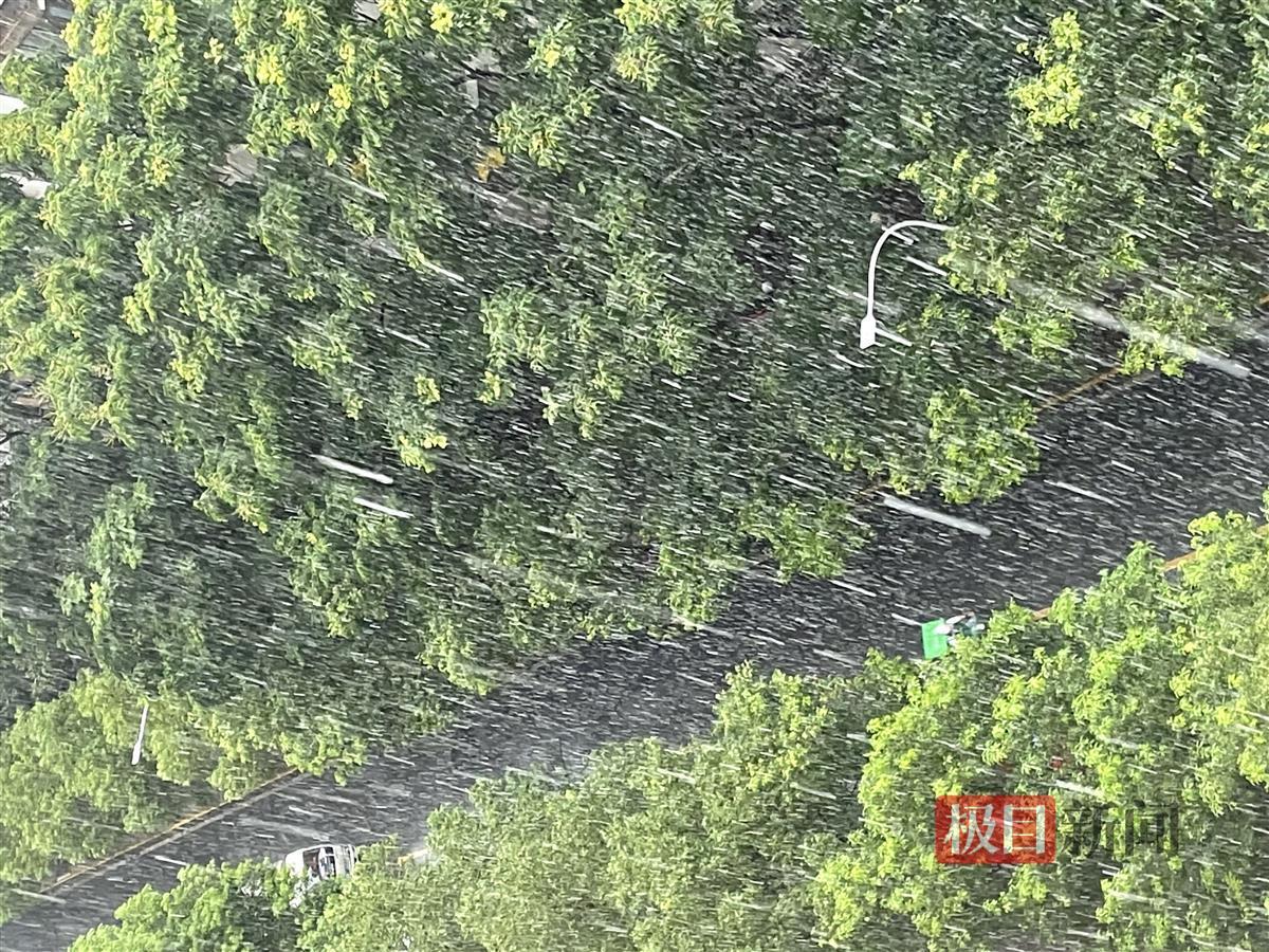 一大早,有市民赶火车,却被大雨阻路了,只能改签下一趟。