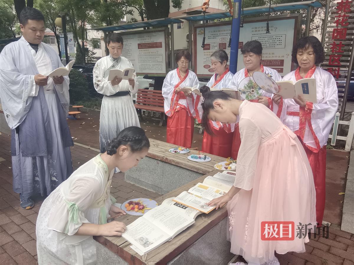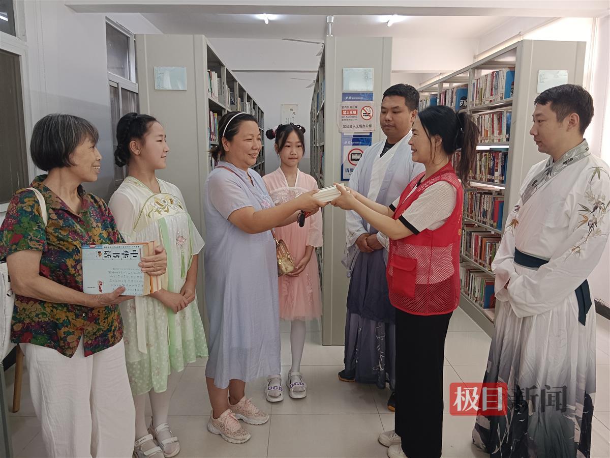 现场,还有不少亲子家庭前来参加本次晒书活动。11岁的刘立恩身着汉服,娴熟地晒书动作引来了居民驻足。汉服搭配传统的晒书节活动,让活动现场古色古香。“我们社区的千家万册图书馆是青山区第一家挂牌图书馆,收藏的书籍涵盖近千户的居民自发捐赠,后期的维护也是由居民进行日常管理,常态化开展读书活动,像刘立恩小朋友就是千家万册图书馆的小小管理员。”碧苑花园社区周琳书记介绍起“千家万册图书馆”的由来,依靠居民力量,共同缔造优质读书氛围。