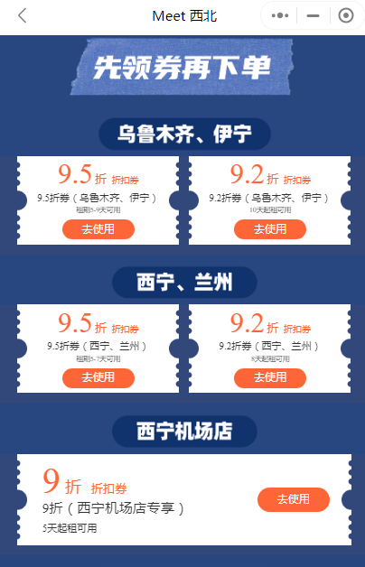 最后房车生活家提醒大家,现在房车生活家推出了“meet西北”的活动,并针对不同的城市送出了很多折扣券,大家可以根据自己的需求来选择合适的房车旅游路线,并领取相对应的优惠券。
