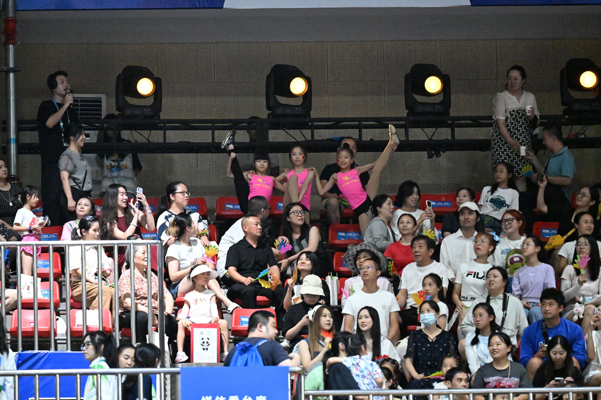▲7月30日,成都体院学院综合馆艺术体操项目,观众在看比赛。摄影:何渤
