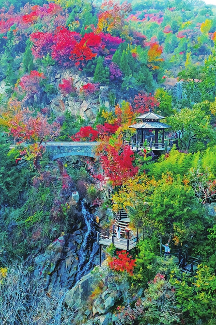 金秋时节,济南周边群山五彩斑斓,层林尽染。此时的红叶谷谷内漫山红遍,清风徐来,使人顿生“停车坐爱枫林晚,霜叶红于二月花”之情。也可到九如山,畅享红叶节。36平方公里的山野里,瀑布声与溪流声和鸣,山水与秋色轻吻,各色树种纷纷变换秋装,像打翻的调色盘,苍青、明黄、赤红倾洒山间湖畔,壮观瑰丽。穿过彩林之间的深黛浅黄,踏过流经山谷沟涧的淙淙清泉,所见之景皆如诗如画。