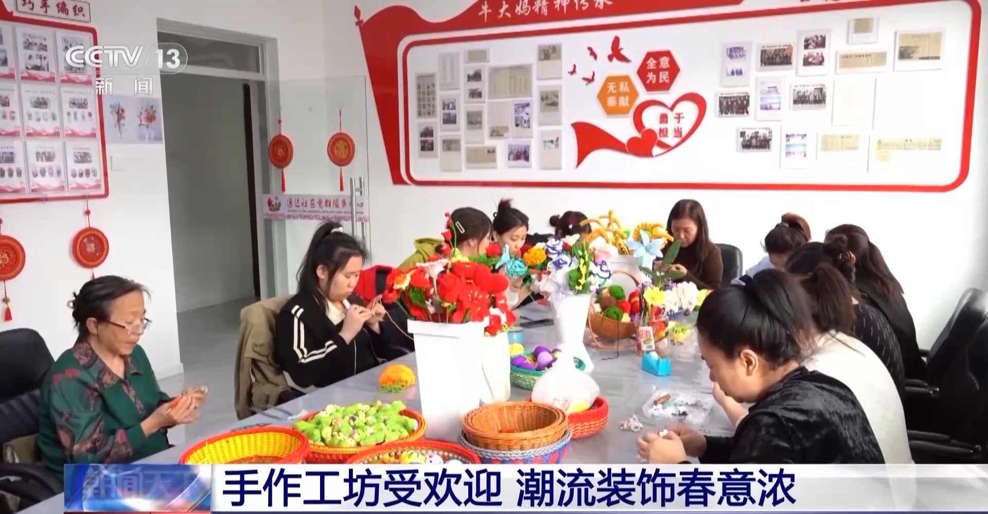 黑龙江省绥化海伦市,融合国家非物质文化遗产“海伦剪纸”的创意理念,通过“巧手编织”项目,让很多社区居民都在假期享受手工编织的快乐。牡丹、红梅、百合等样式精美的手捧仿真花,烘托着春日氛围。