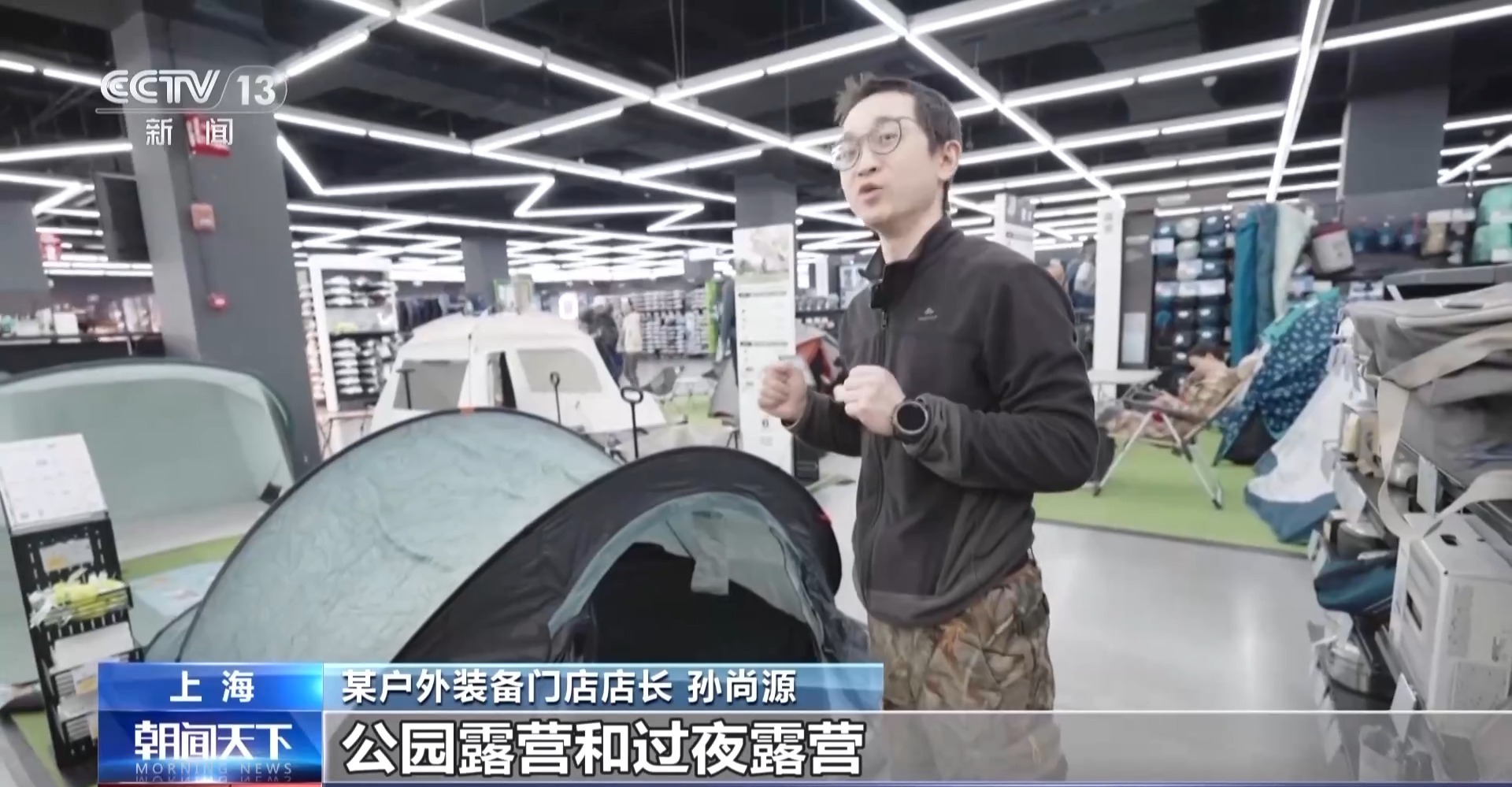 义乌户外用品经营户朱悦来:如今的露营方式,已经从原来的下午茶式休闲露营,发展到海边沙滩露营、山顶旷野露营,甚至是更加极限环境的露营。