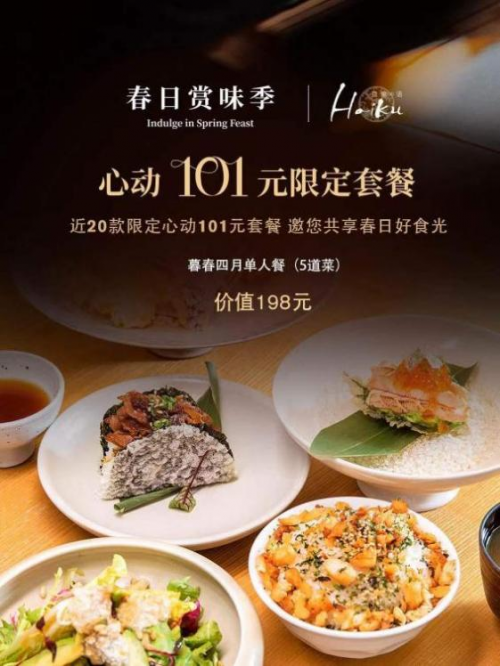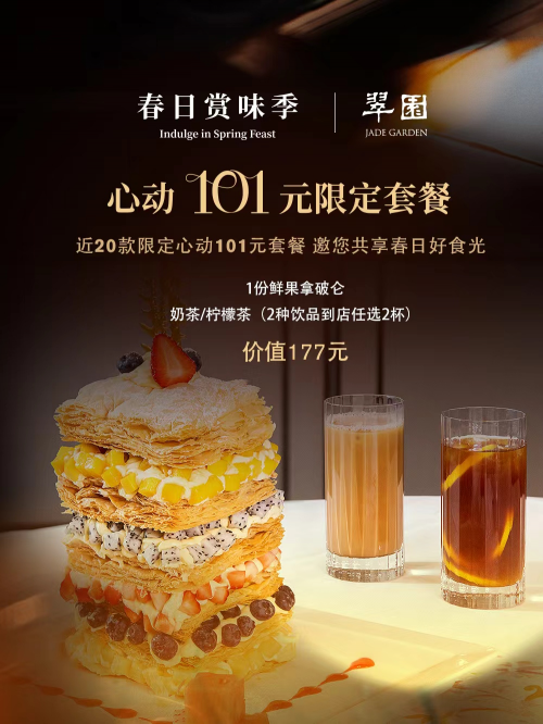 4月3日-5月5日王府中环联动场内18家明星餐饮臻选店内时令好味,呈现18款心动独家套餐,每个套餐仅需101元就可品尝到不同风味带来的魅力,王府中环BESPOKE雋環会员可凭积分兑换心动101元限定套餐通用券,也可在王府中环大众点评购买。