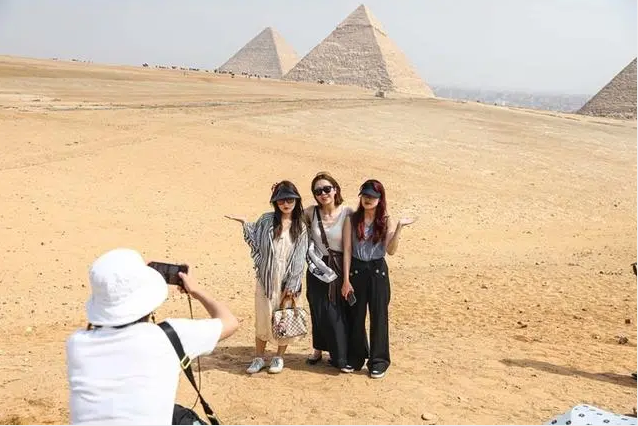 中国游客在埃及吉萨金字塔景区游览拍照图源:新华社