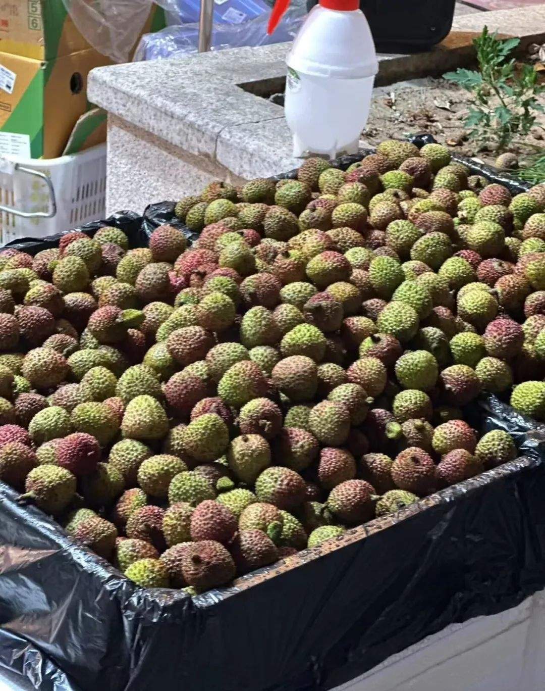 据了解,最近天气热了,海南产的“妃子笑”大量上市,导致荔枝价格下降。比起上个月卖的“桂花香”,“妃子笑”果核更小,味道更好。