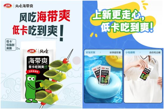 卫龙此次将“风吃海带”升级为“风吃海带爽”,不仅仅是一个名称的变化,更是对产品核心特性的提炼与强调。“爽”一字的加入,直接突出了产品升级后的核心卖点——更加脆爽的口感体验,瞬间激发消费者的味蕾想象。同时,新包装采用了更为清新、活力的设计,不仅提升了产品的视觉吸引力,也更好地传达了产品低脂低卡、健康轻盈的特性,与当下追求健康生活方式的消费趋势不谋而合。