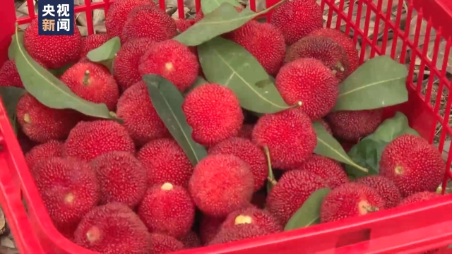 眼下也是杨梅上市的季节,在广西贺州市昭平县一家杨梅种植园内,人们高举竹竿,手提小篓,采摘尝鲜。