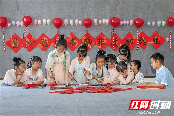 泸溪县开展“童心飞扬,书画非遗助起航”活动。(张克宁摄)