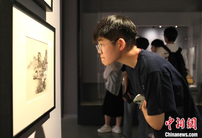6月20日,“鲁迅的艺术世界——北京鲁迅博物馆馆藏文物展”在成都博物馆开展。本次展览展出的北京鲁迅博物馆110余件/套馆藏精品文物,让参观者更加了解鲁迅先生的艺术世界。图为参观者观看展出的版画作品《扬诺维茨大桥》。